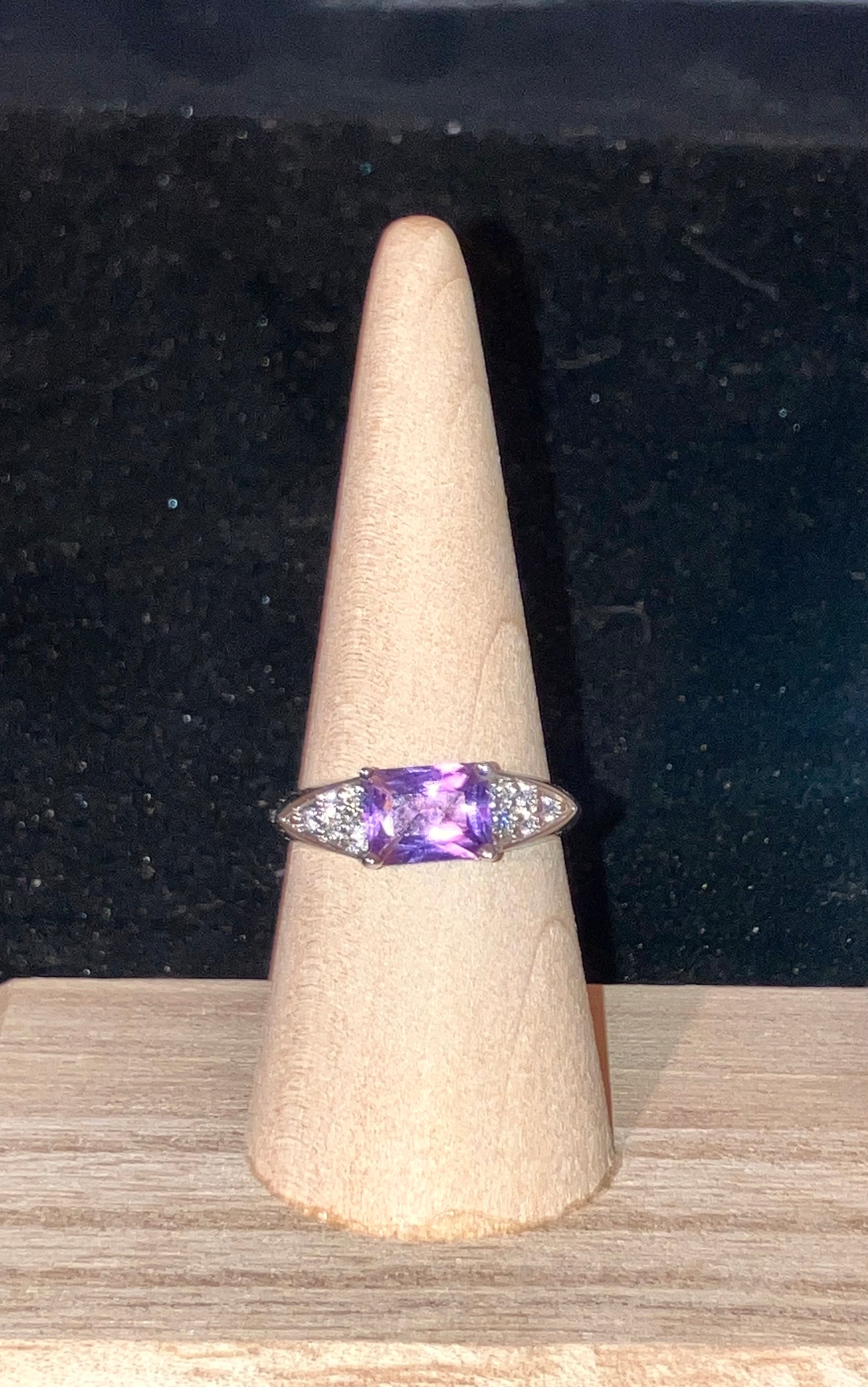 Amethyst Sterling Silver Ring 1.25 Carats Radiant Cut Size 8